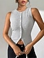 בגדי ריקוד נשים סוודר אפוד סוודר סגנון רחוב יום יומי צבע אחיד מצולע צווארון עגול קצר כפתורים סרוג ללא שרוולים חולצות רגילות לִסְרוֹג חגים ליציאה סוף שבוע אפור בהיר קיץ אביב