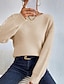 בגדי ריקוד נשים סוודר אופנתי צבע אחיד מצולע צווארון עגול קצר סרוג שרוול ארוך חולצות רגילות לִסְרוֹג בָּחוּץ חגים ליציאה שחור לבן סתיו
