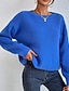 בגדי ריקוד נשים סוודר יום יומי רך צבע אחיד מצולע גולף מפוצל סרוג שרוול ארוך חולצות רגילות לִסְרוֹג בָּחוּץ יומי סוף שבוע כחול ים תלתן סתיו חורף