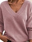 בגדי ריקוד נשים סוודר סגנון רחוב יום יומי צבע אחיד צווארון V סרוג דפוס שרוול ארוך חולצות רגילות לִסְרוֹג חגים ליציאה סוף שבוע לבן ורוד מסמיק סתיו חורף