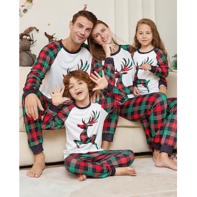 משפחה פיג'מות משובץ דפוס חג המולד בית דפוס אודם שרוול ארוך פעיל תלבושות תואמות