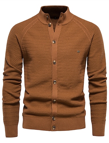 בגדי ריקוד גברים סוודר קרדיגן סוודר קצוץ סוודר סרוג מצולע לִסְרוֹג רגיל אבזם צבע אחיד / רגיל עומד אופנתי קלסי לבוש יומיומי פגישה (דייט) ביגוד שרוולי ראגלן סתיו חורף חום M L XL