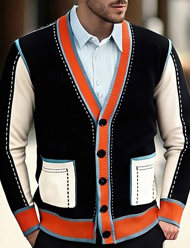 בגדי ריקוד גברים סוודר סוודר שמלה סוודר קרדיגן סוודר סרוג מצולע לִסְרוֹג קצר בלוק צבע סרוג אחיד צווארון V אופנתי שאלים קזו'אל לבוש יומיומי ביגוד סתיו חורף כתום M L XL