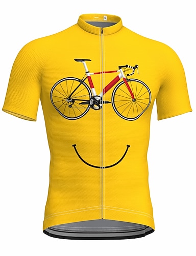 בגדי ריקוד גברים חולצת ג'רסי לרכיבה גראפי מצחיק שרוולים קצרים אופנייים ג'רזי צמרות עם 3 כיסים אחוריים רכיבת הרים רכיבת כביש ייבוש מהיר רצועות מחזירי אור כיס אחורי פתילת לחות ספורט צהוב ביגוד