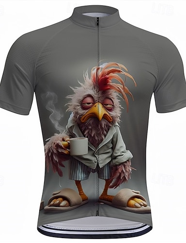בגדי ריקוד גברים חולצת ג'רסי לרכיבה חיה אנימציה שרוולים קצרים אופנייים טי טי צמרות עם 3 כיסים אחוריים רכיבת הרים רכיבת כביש ייבוש מהיר רוכסן קדמי פתיליות ספורט אפור כהה אפור כהה חום ביגוד