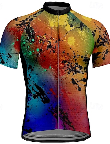 בגדי ריקוד גברים חולצת ג'רסי לרכיבה גראפי קולור בלוק צמחים שרוולים קצרים אופנייים טי טי צמרות עם 3 כיסים אחוריים עמידות UV ייבוש מהיר רוכסן קדמי רצועות מחזירי אור ספורט קשת ביגוד