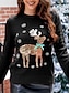 בגדי ריקוד נשים סוודר יום יומי רך אייל חג המולד מצולע צווארון עגול קצר פאייטים סרוג שרוול ארוך חולצות רגילות לִסְרוֹג בָּחוּץ יומי חגים שחור יין סתיו חורף