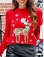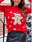 בגדי ריקוד נשים סוודר אלגנטית אופנתי סגנון רחוב צבע אחיד פרחוני גראפי צווארון עגול קצר סרוג דפוס שרוול ארוך חולצות רגילות לִסְרוֹג חג מולד בָּחוּץ יומי אודם סתיו חורף