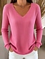 בגדי ריקוד נשים סוודר יום יומי רך צבע אחיד מצולע צווארון V סרוג שרוול ארוך חולצות רגילות לִסְרוֹג בָּחוּץ יומי סוף שבוע ורוד מסמיק פול אביב סתיו