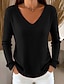 בגדי ריקוד נשים סוודר אלגנטית יום יומי רך צבע אחיד מצולע צווארון V סרוג שרוול ארוך חולצות רגילות לִסְרוֹג בָּחוּץ יומי סוף שבוע שחור לבן סתיו חורף