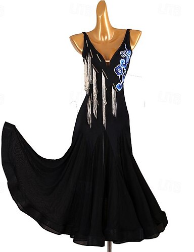 ריקודים סלוניים שמלה ריינסטון בגדי ריקוד נשים הצגה הדרכה ללא שרוולים גבוה שיפון צ'ינלון