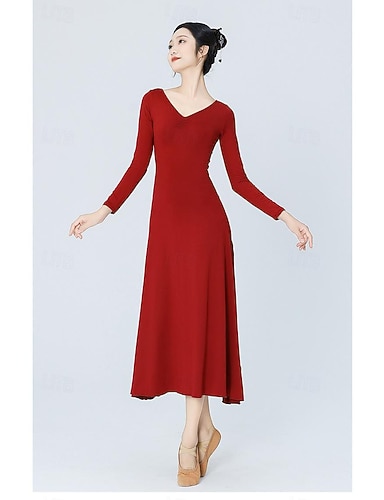 ריקוד לטיני ריקודים סלוניים שמלה צבע טהור בגדי ריקוד נשים הדרכה לבוש יומיומי שרוול ארוך גבוה פולי
