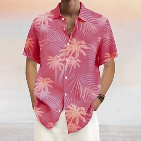 בגדי ריקוד גברים עץ קוקוס צמחים טרופיים חולצה חולצה קובנית חולצת הוואי שרוולים קצרים הוואי אתר נופש חופשה חגים ביגוד חוף קיץ אביב חולצת צווארון מחנה הדפסת תלת מימד ורוד מסמיק