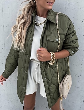 בגדי ריקוד נשים ז'קט פאפר ז'קט מרופד ז'קט קז'ואל נוח נושם רוכסן כיס יום יומי אחיד חופשה רחוב קזו'אל לבוש יומיומי רוכסן קצר ארוך צווארון מתקפל רגיל שרוול ארוך הלבשה עליונה שחור חאקי ירוק צבאי אביב סתיו