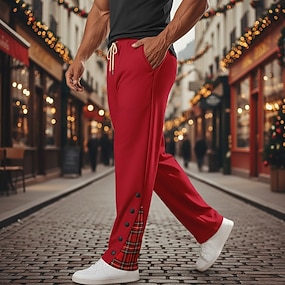 בגדי ריקוד גברים וופל מכנסי טרנינג מכנסיים מכנסי טרנינג עם רגליים ישרות מכנסי טרנינג פתוחים שרוך אלסטית מותניים אחיד פתילת לחות נושם באורך מלא חג מולד בָּחוּץ מפלגה אופנתי סגנון רחוב צהוב ורוד מסמיק