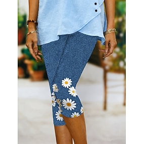 בגדי ריקוד נשים מכנס שלושת רבעי חותלות חופשה אופנתי סגנון רחוב אורך עגל מותניים גבוהים פרחוני גראפי קומפורט רך נוח סטרצ'י (נמתח) יומי בָּחוּץ חופשה פול צהוב כחול נייבי קיץ אביב סתיו גזרה צרה