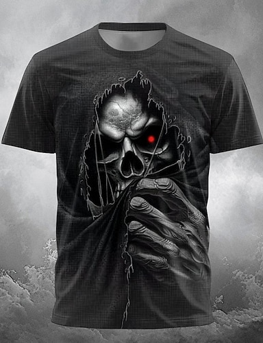 חג ליל כל הקדושים בגדי ריקוד גברים מלאך המוות מלאך קוֹצֵר חולצה קצרה שרוולים קצרים חולצה קצרה הדפסת תלת מימד צווארון עגול קצר חולצה מוּגזָם מעצב מחריד מפלגה רחוב קזו'אל שחור אודם פול