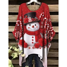 חג המולד בגדי ריקוד נשים חולצה גראפי איש שלג אלגנטית וינטאג' טרופי שרוולים קצרים חצי שרוול שרוול עטלף צווארון עגול קצר חולצות רגילות יומי חגים בגדי נופש יין אודם אביב סתיו חורף