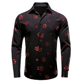 חג המולד בגדי ריקוד גברים סנטה קלאוס פתית שלג כפתור אפ פולו חולצות פולו גולף שרוול ארוך חולצות פולו צווארון מתקפל יום יומי בָּחוּץ מסיבת חג המולד דפוס שחור אודם