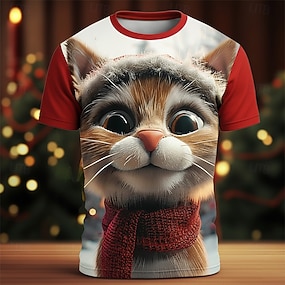 חג המולד בגדי ריקוד גברים חתול חולצה קצרה שרוולים קצרים חולצה קצרה הדפסת תלת מימד צווארון עגול קצר חולצה יומי מעצב אומנותי חופשה מפלגה רחוב אדום 3 אודם אדום 2 כל העונות ביגוד S M L XL XXL XXXL