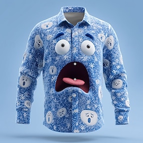 חג המולד בגדי ריקוד גברים דמות מצוירת בתלת מימד פתית שלג פרצוף חיוך חולצה חולצה עם כפתורים שרוול ארוך מצחיק בָּחוּץ חגים אביב סתיו צווארון מתקפל הדפסת תלת מימד חולצות צווארון