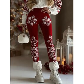 בגדי ריקוד נשים חותלות חופשה וינטאג' אופנתי באורך מלא מותניים גבוהיםPantsחג המולד גראפי איש שלג פתית שלג מדפיס שמור על חום הגוף רך נושם סטרצ'י (נמתח) רשמי בָּחוּץ חופשה שחור לבן אודם