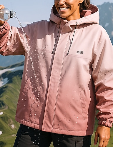 בגדי ריקוד נשים מעיל ג'קט לטיולי הליכה ז'קט קשיח חיצוני עמיד למים עמיד בגדי טיולים אביב סתיו ג'קט ציד דיג טיפוס טלאים ורוד קרם אדום