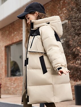 ילדים בנות קפוצ'ון צבע אחיד שרוול ארוך כיס חורף סגנון רחוב יומי פוליאסטר קזו'אל גזרה מחוייטת