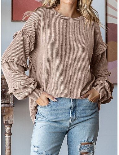 בגדי ריקוד נשים חולצה צבע אחיד מסוגנן יום יומי שרוול ארוך צווארון עגול קצר חולצות רגילות יומי קפלים ורוד מסמיק פוקסיה חאקי אפור כהה אביב סתיו