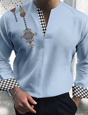 בגדי ריקוד גברים גראפי שבטי חולצת הנלי שרוול ארוך הדפסת תלת מימד אופנתי מעצב נוח בָּחוּץ יומי קיץ & אביב כחול חום תלתן אפור הנלי חולצת טריקו של הנלי