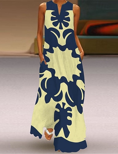 בגדי ריקוד נשים שמלה ארוכה שמלת מקסי שמלה פרחונית שמלה הדפסה אופנתי מודרני בָּחוּץ ליציאה סוף שבוע רגיל פרחוני ללא שרוולים צווארון עגול קצר צווארון V צהוב ירוק כהה כחול כהה אדום ורד קיץ אביב