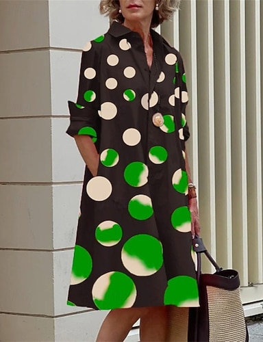 בגדי ריקוד נשים שמלת מידי שמלת חולצה שמלת קז'ואל אופנתי מודרני יומי חוף סוף שבוע רגיל נקודה שרוול ארוך צווארון חולצה תלתן אביב סתיו
