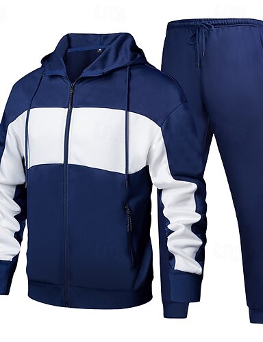 בגדי ריקוד גברים אימונית מכנסי טרנינג קפוצ'ון עם רוכסן כיס קולור בלוק חליפות בגדים סתיו שחור נייבי כהה חדר כושר להתאמן ספורטיבי עמיד שרוול ארוך ספורט לבוש אקטיבי מיקרו-אלסטי רגיל