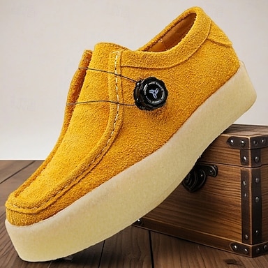 נעלי מוקסין זמש צהובות לגברים, נעלי לופז נוחות וקז'ואליות לאביב ולסתיו
