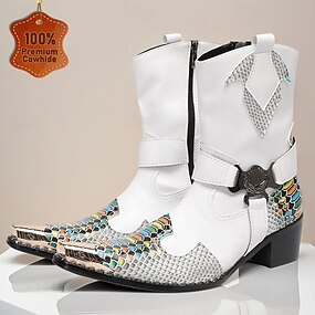 מגפיים מערביים לגברים עם הדפס נחשים מטאלי ועיצוב משובץ - עיצוב אופנתי ונועז לפסטיבלים, מסיבות ואירועים ייחודיים
