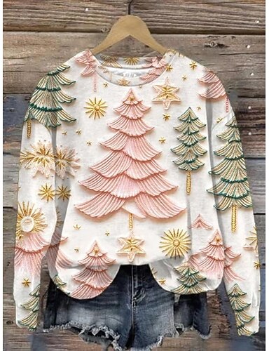 בגדי ריקוד נשים סוודר יומי יום יומי גראפי פתיתי שלג מצולע צווארון עגול קצר סרוג דפוס שרוול ארוך חולצות רגילות לִסְרוֹג בָּחוּץ סוף שבוע לבן סתיו חורף