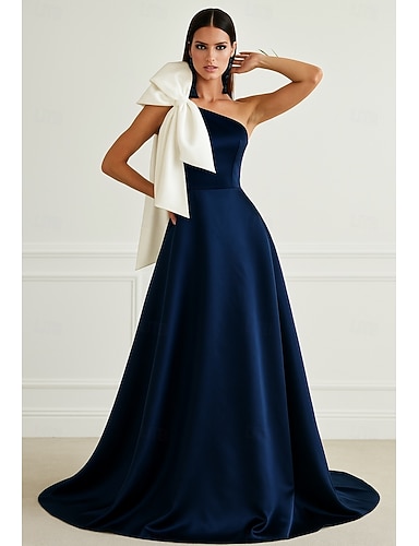 גזרת A שמלות ערב אלגנטית לבוש רשמי רשמי חתונה עד הריצפה ללא שרוולים כתפיה אחת כיס סאטן עם נצנוץ פפיון(ים) 2025