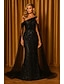 שמלת ערב עם קשירה שחורה / עמודה אלגנטית שמלה רשמית חתונה רשמית באורך הרצפה ללא שרוולים קטיפה על כתף אחת עם פנינים ופרחים על הכתף 2025