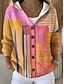 בגדי ריקוד נשים קרדיגן חופשה וינטאג' גיאומטרי קולור בלוק מצולע עם קפוצ'ון סרוג דפוס כיס קדמי שרוול ארוך חולצות רגילות לִסְרוֹג בָּחוּץ יומי חגים צהוב ורוד מסמיק סתיו חורף