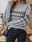 בגדי ריקוד נשים סוודר חג המולד סוודר Fair Isle סוודר סוודר האי הוגן סגנון רחוב יום יומי גיאומטרי מצולע צווארון עגול קצר סרוג שרוול ארוך חולצות רגילות לִסְרוֹג בָּחוּץ יומי סוף שבוע תלתן סתיו חורף