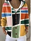 סוודר לנשים קז'ואל רך גיאומטרי בלוק צבעוני אופנתי מודרני שרוולים ארוכים צווארון עגול רגיל חולצות יומי חג הדפס כחול כתום ירוק חאקי אפור אביב סתיו חורף
