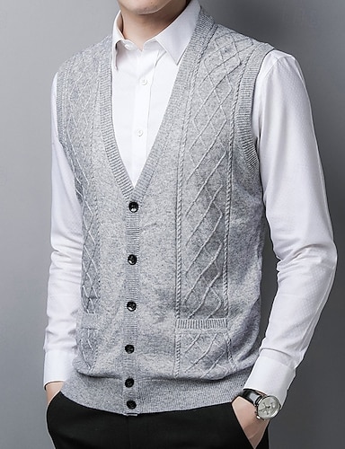 בגדי ריקוד גברים סוודר קרדיגן סוודר קצוץ סוודר סרוג מצולע לִסְרוֹג חולצות רגילות כפתורים אחיד צווארון V אופנתי קלסי חופשה לבוש יומיומי ביגוד סתיו חורף שחור ירוק צבאי M L XL