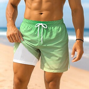 בגדי ריקוד גברים גיאומטרי צבע מעבר צבע מכנסיים קצרים מכנסי ים קצרים 2 ב-1 מכנסי שורט בגדי ים מותן בינוני הוואי חגים כיסי צד עם תוחם דחיסה מותן שרוך אלסטי מְעַצֵב ביגוד