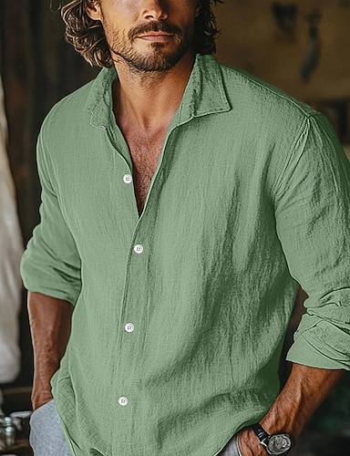 בגדי ריקוד גברים חולצה חולצת פשתן חולצת קיץ חולצת חוף צבע אחיד חופשה קזו'אל שחור לבן תלתן כחול בהיר שרוול ארוך הסווטשרט אביב קיץ ביגוד כפתור למטה