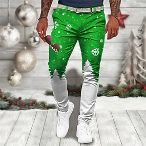 חג המולד סצנת חג המולד לגברים מכנסיים מודפסים פתית שלג עסק קז'ואל מכנסיים שמלת הדפסה תלת מימדית מכנסיים חיצוניים ללבוש יומי בגדי רחוב פוליאסטר יין כחול ירוק s m l מכנסיים גמישות מותניים בינונית