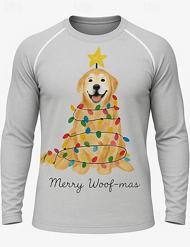חג המולד בגדי ריקוד גברים טישרט לריצה חולצת כושר הדפסת תלת מימד שרוול ארוך צמרות רחוב קזו'אל סתיו גראפי תומך זיעה נושם אתלטיקה בגדי ספורט לבוש אקטיבי אפור