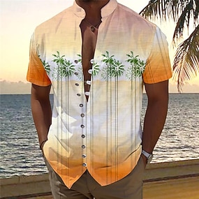 בגדי ריקוד גברים עץ דקל צמחים טרופיים חולצת הוואי חולצת אלוהה חולצות מודפסות שרוול קצר חולצה צווארון עומד(סיני) הוואי אתר נופש חופשה חגים לבוש יומיומי צהוב פול כתום S M L