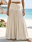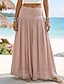 בגדי ריקוד נשים חצאית לחופשה בוהמיה וינטאג' יום יומי מקסי מותניים גבוהים חצאיות אחיד אלסטית מותניים זורם סטרצ'י (נמתח) יומי חוף פול ורוד בהיר ורוד כהה שחור קיץ פשתן כותנה