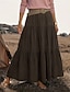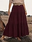 בגדי ריקוד נשים חצאית דמוית כותנה פשתן אופנתי יום יומי מקסי מותן בינוני חצאיות אחיד Ruched קפלים קשיח יומי חופשה שחור יין סגול חום קיץ פוליאסטר