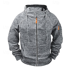 בגדי ריקוד גברים סווטשירט עם רוכסן שחור חאקי אפור עם קפוצ'ון אחיד לרכוס רוכסן כיס קדמי ספורט וחוץ קזו'אל יומי סגנון רחוב מגניב מעצב קיץ & אביב ביגוד קפוצ'ונים חולצות טריקו שרוול ארוך